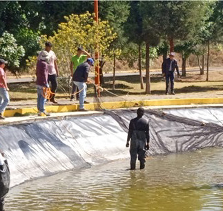 Como parte de este proceso, la universidad realiza trabajos de mantenimiento integral en el lago del campus —espacio central del proyecto— con el objetivo de asegurar condiciones óptimas para el desarrollo de la especie. Estas labores incluyen la limpieza y rehabilitación de la geomembrana, fundamentales para preservar el equilibrio del ecosistema.